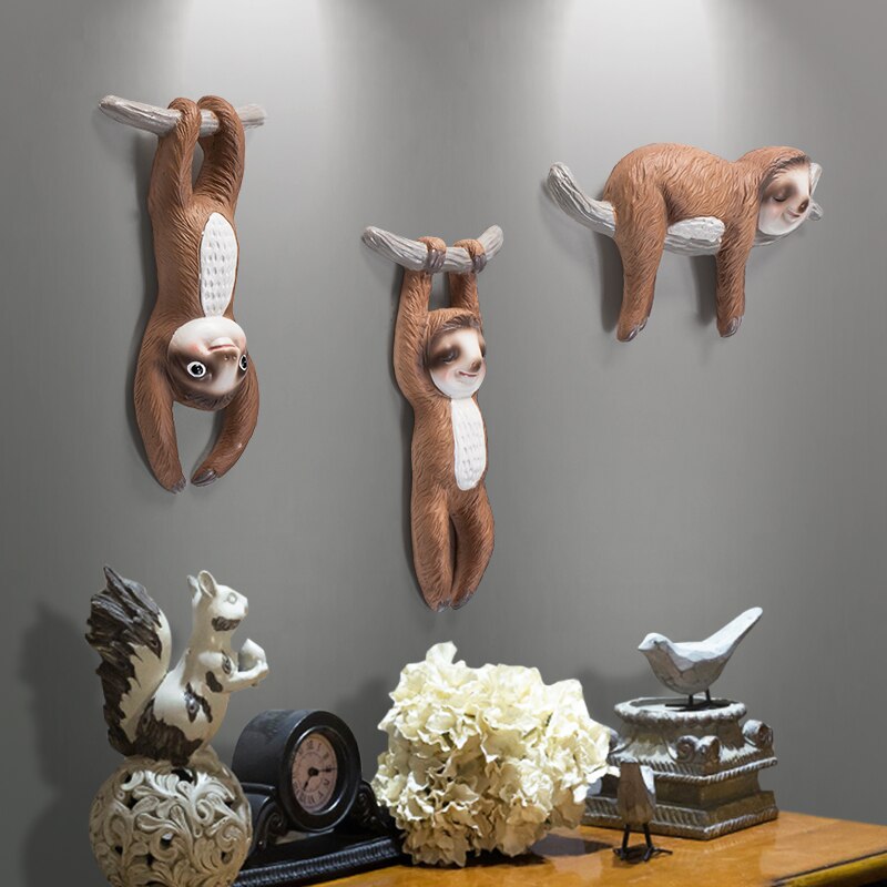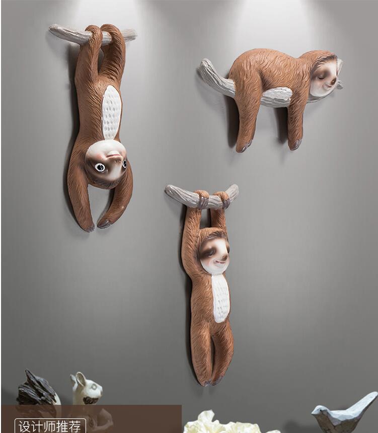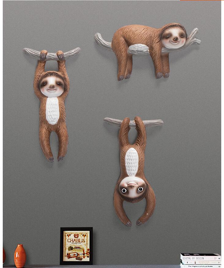 nordisk 3d stereo harpiks vegg dovendyr dekorasjon restaurant hjemme stue vegg klistremerke veggdyr dyr tilbehør håndverk
